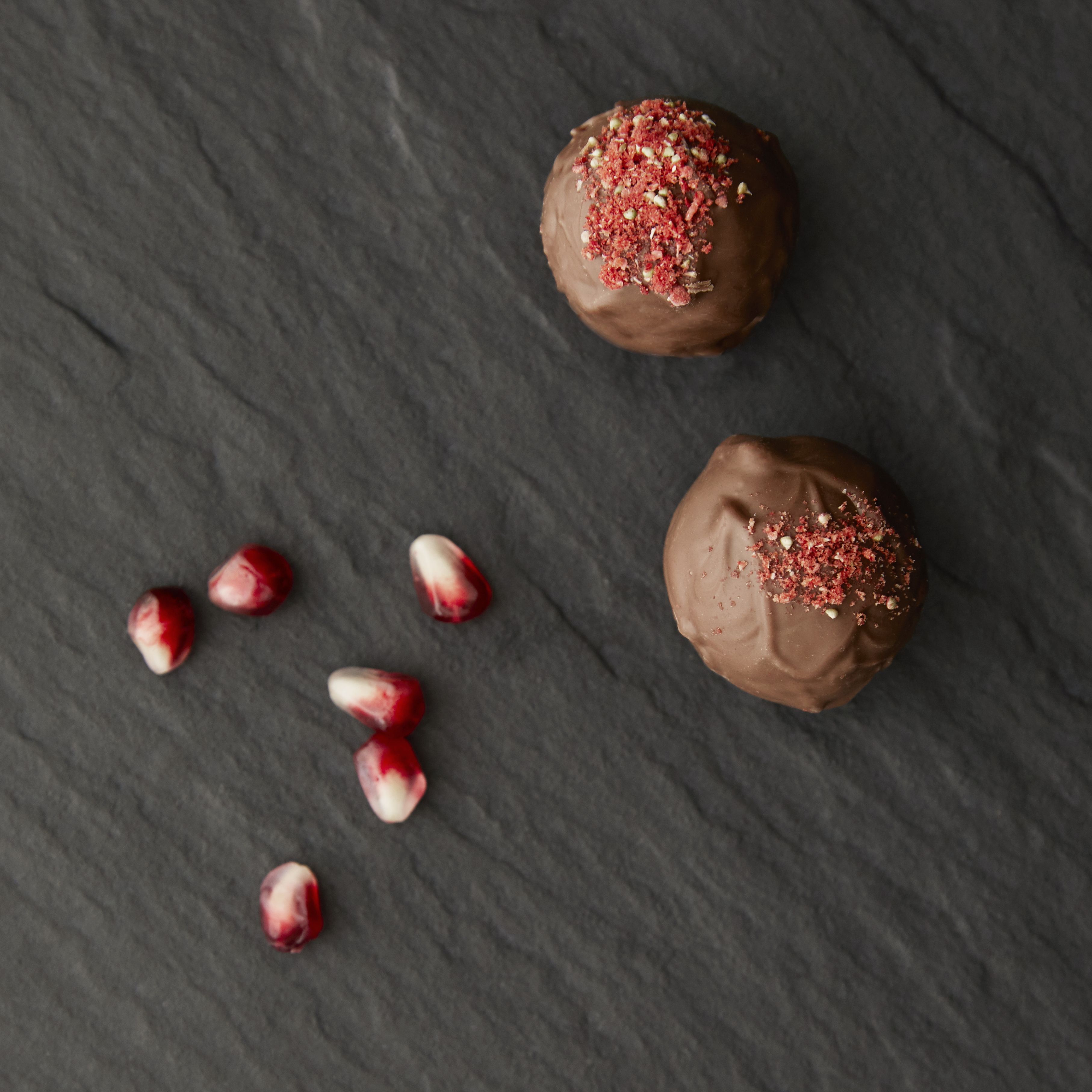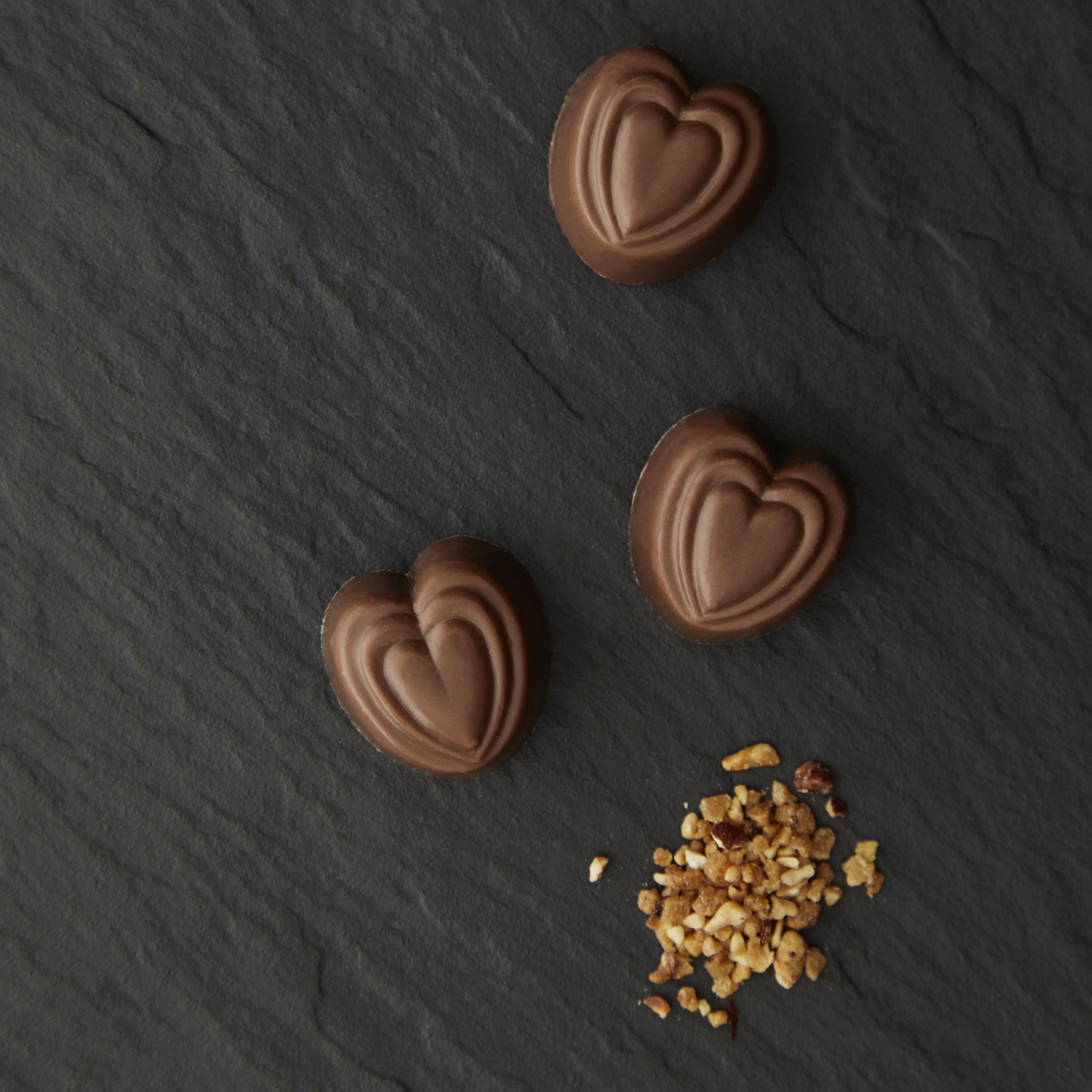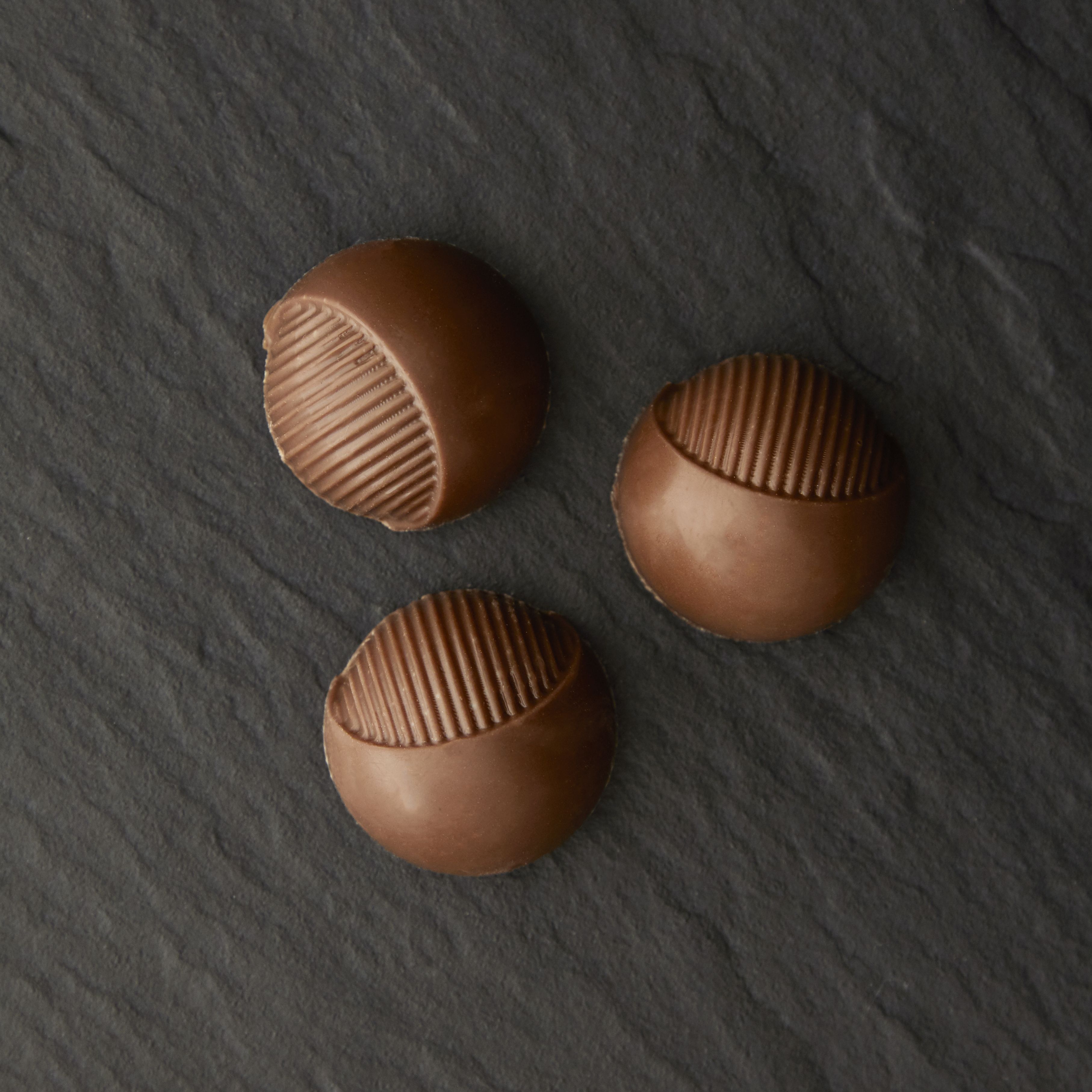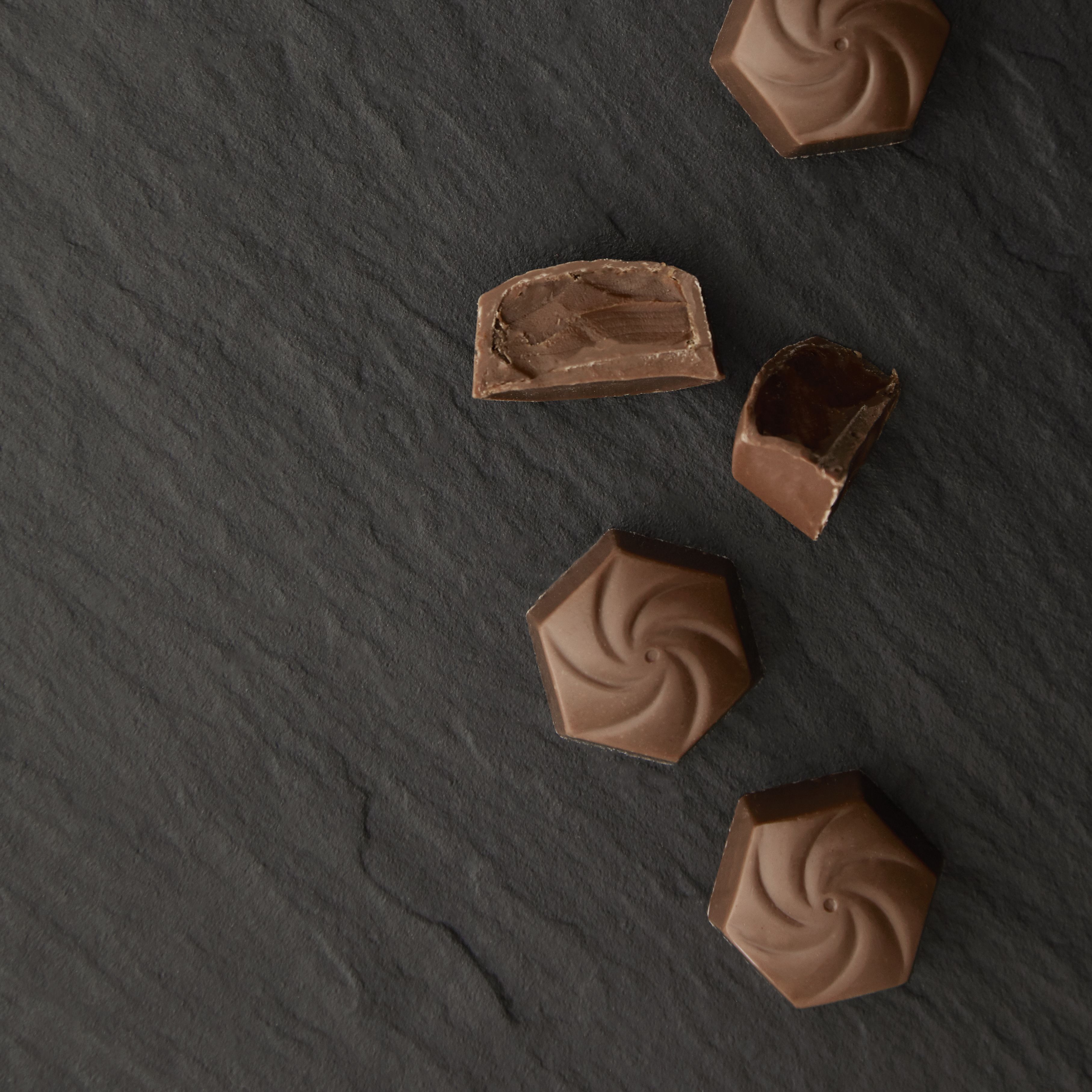 Her er et udvalg af de fyldte chokolader, som Camilla laver.