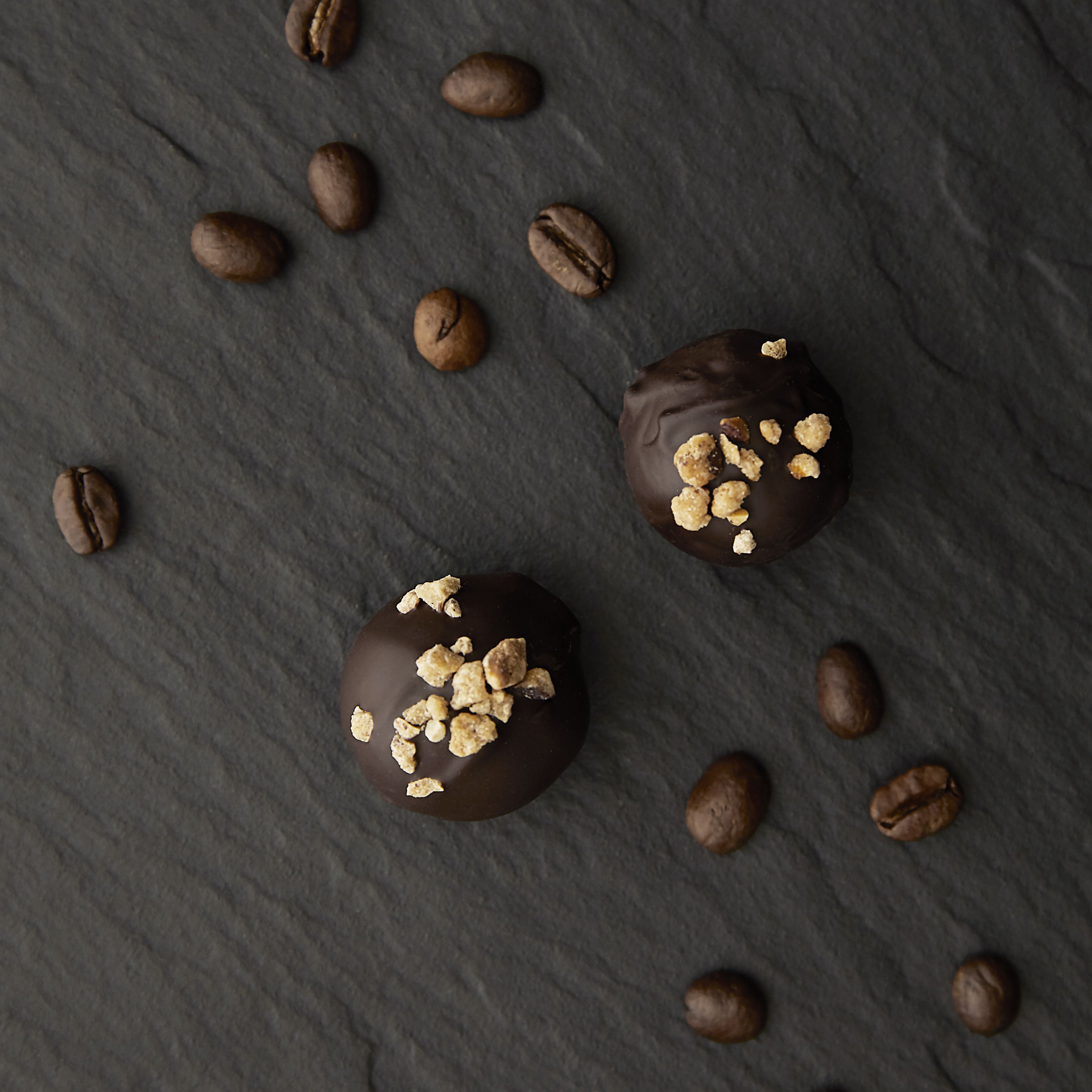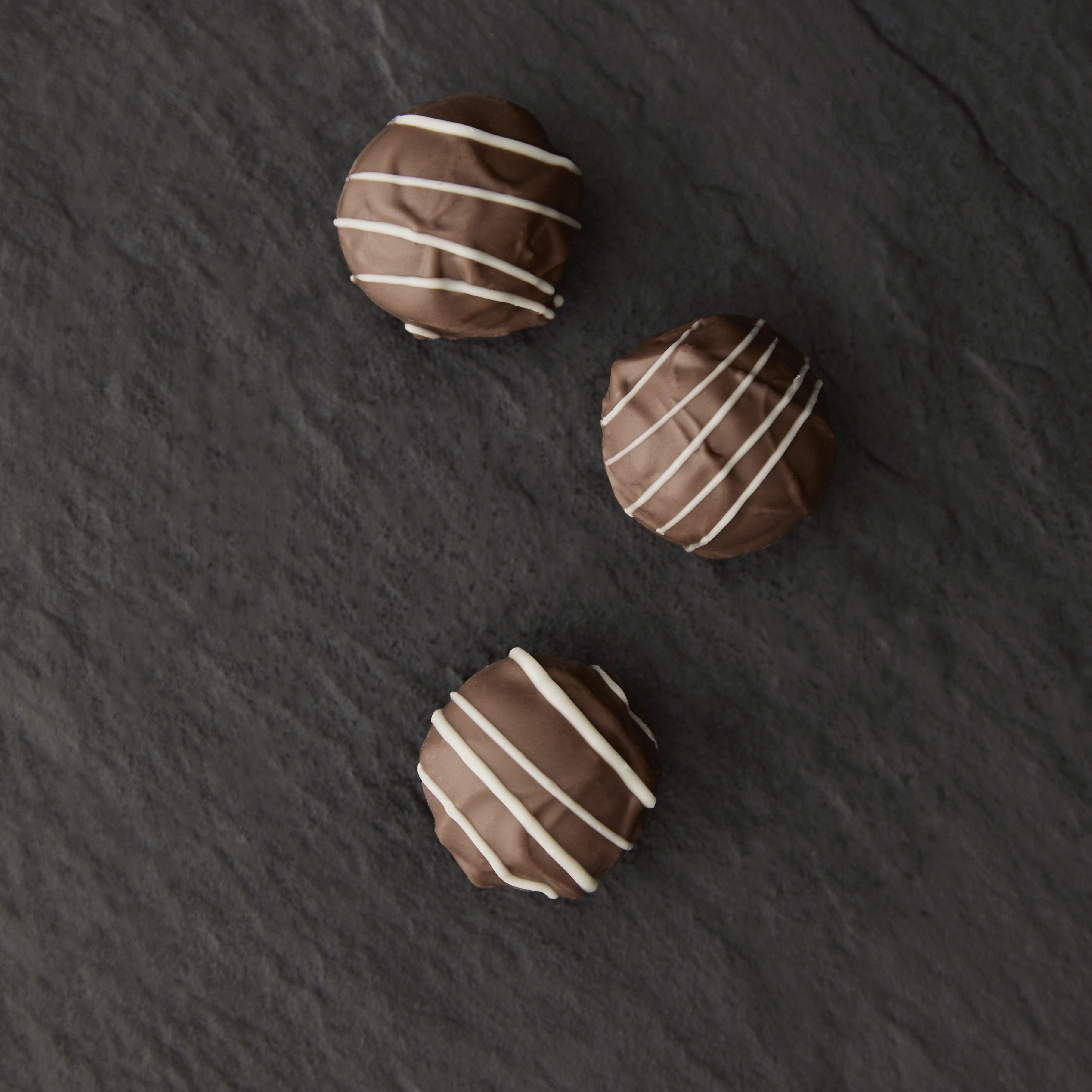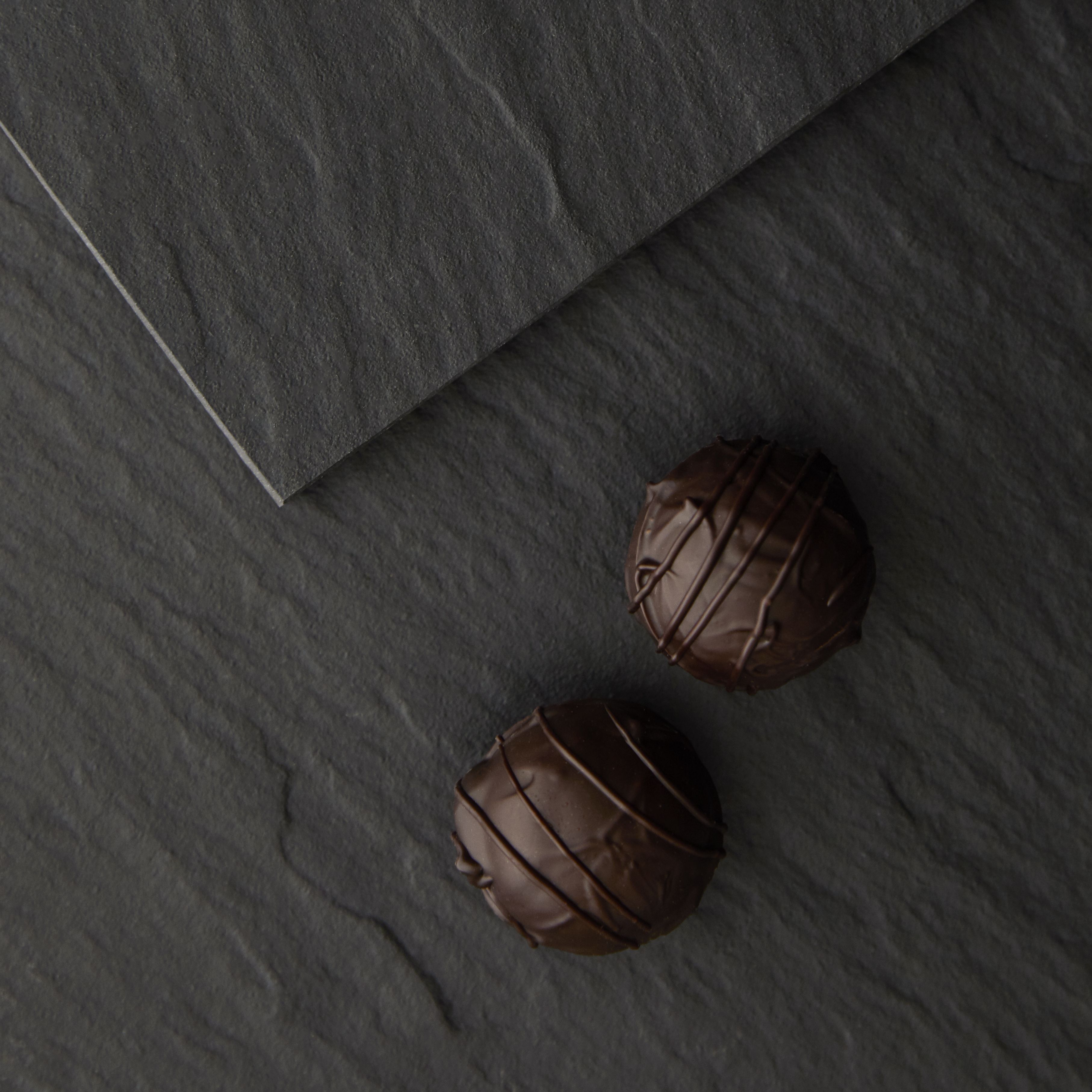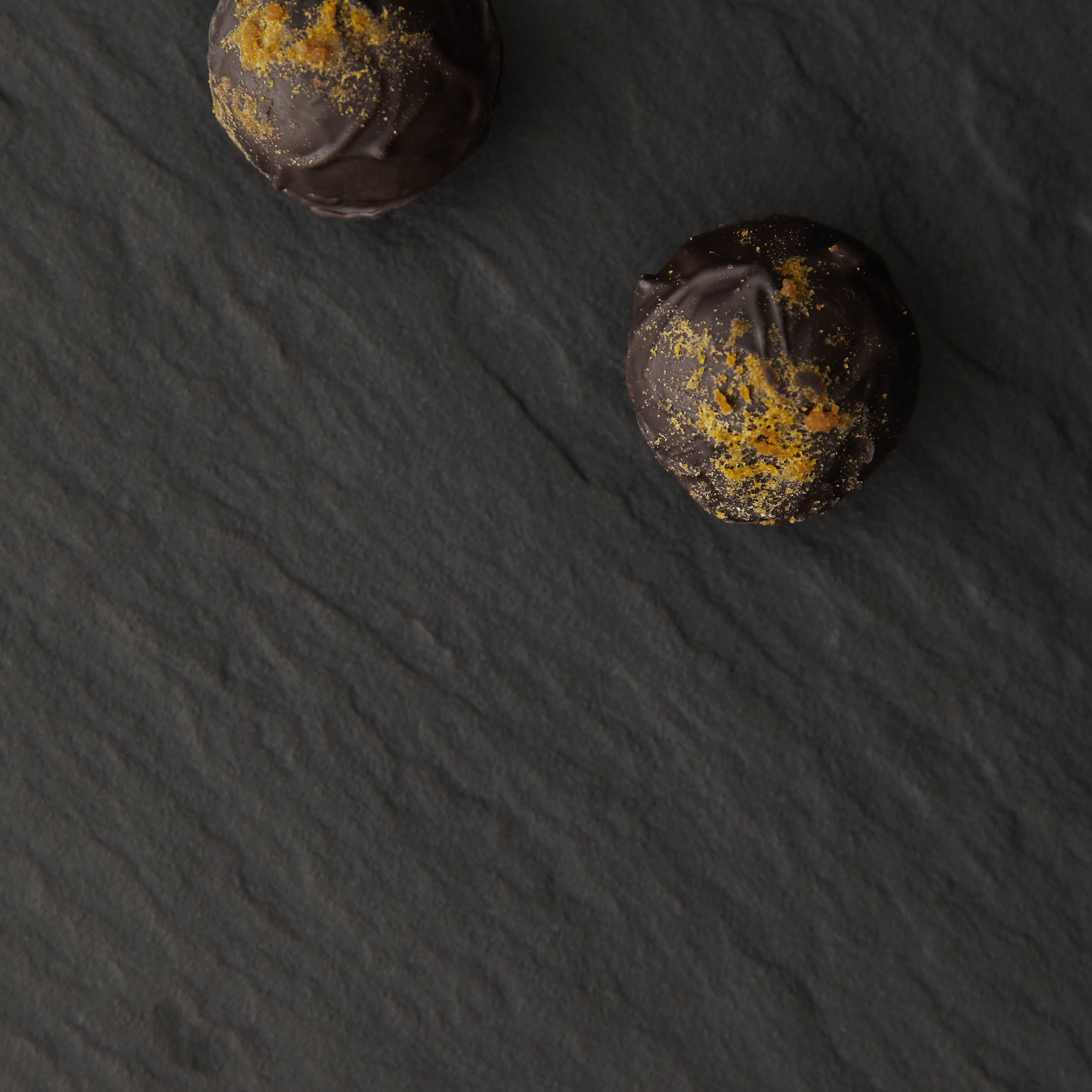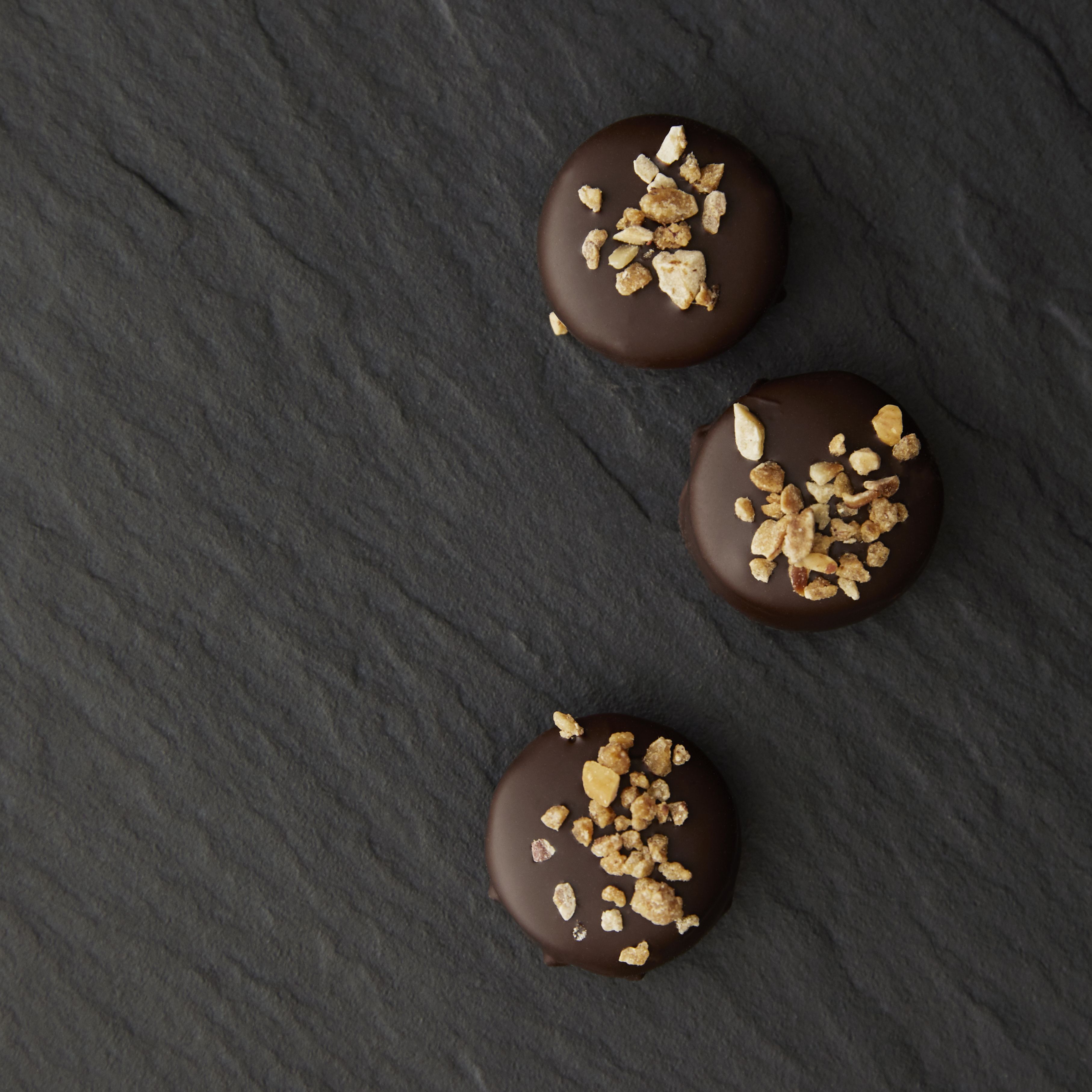 Her er et udvalg af de fyldte chokolader, som Camilla laver.
